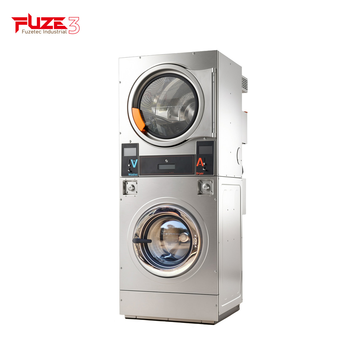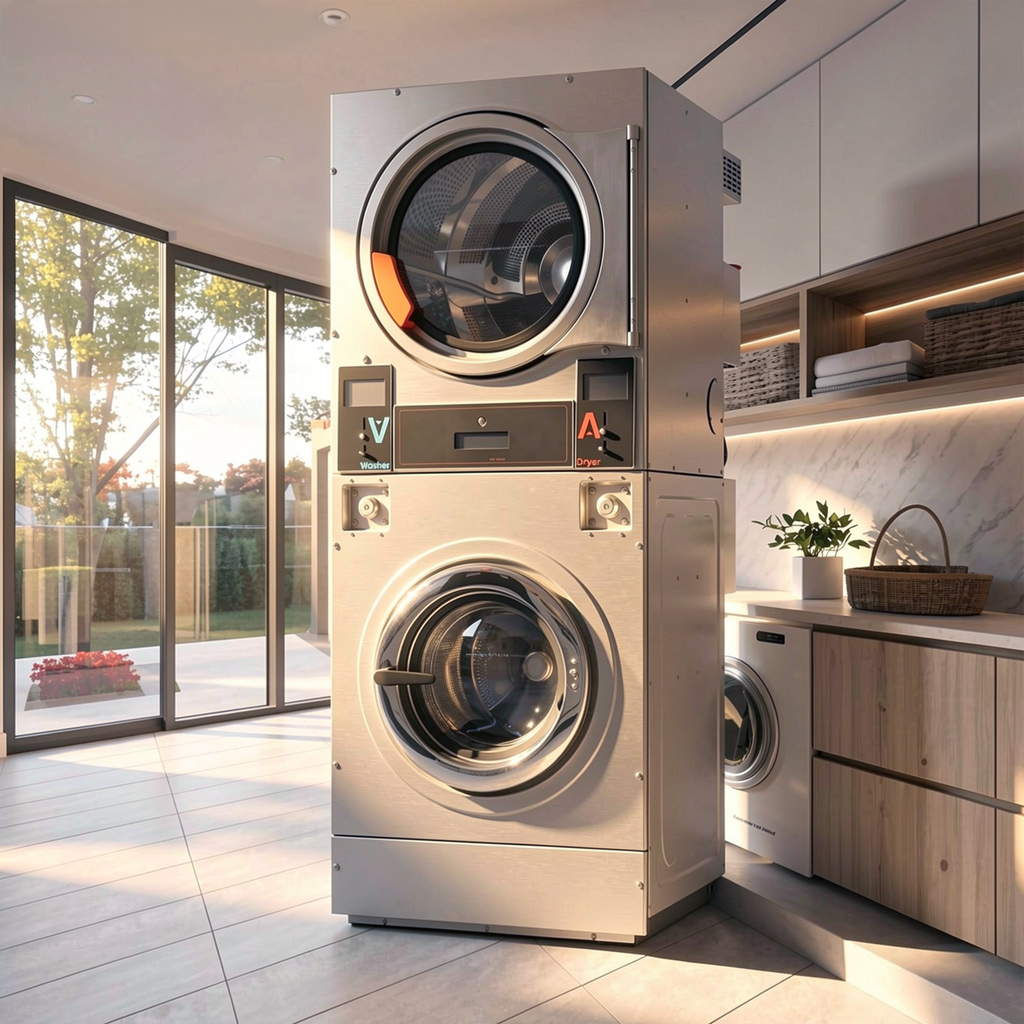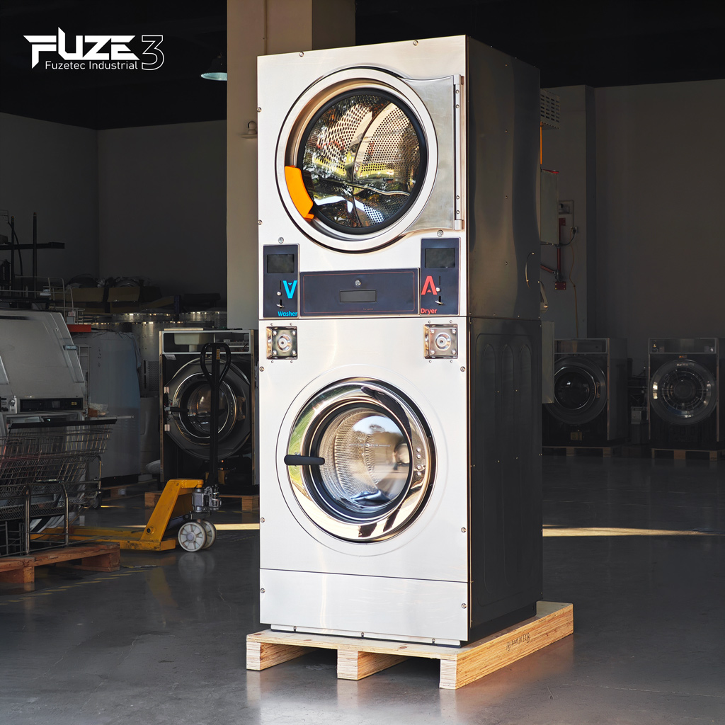 Commercial laundry stack unit, efficient washer dryer combo for laundromat, stackable high-capacity industrial machine